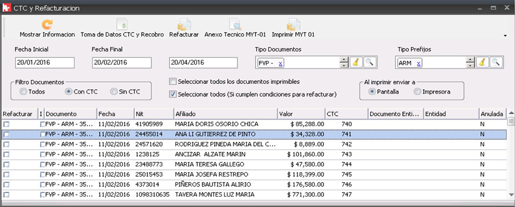 • Impresión de los formatos MYT-01 por cada CTC recibido en la entidad.